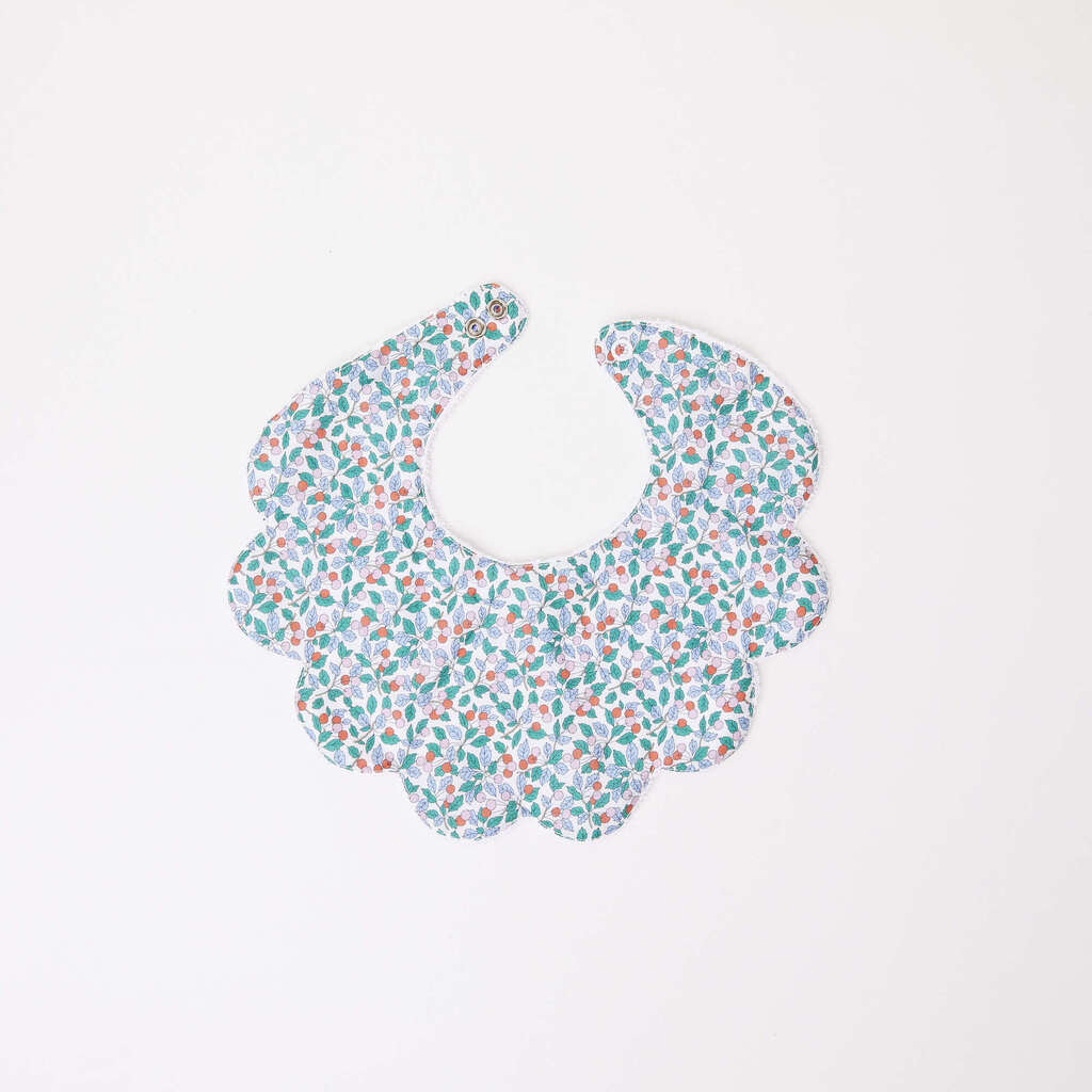 Babador feito em algodão na estampa floral exclusiva Liberty London. Possui forro atoalhado e fechamento com botão de pressão.