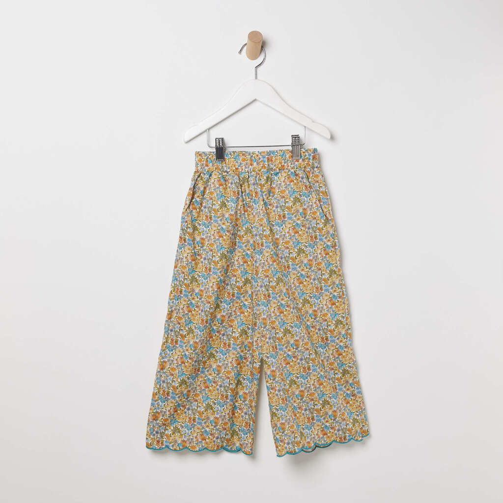 Descrição: Calça feita em algodão no tecido exclusivo Liiberty London. Elástico no cós e bordado em formato de ondas na barra.