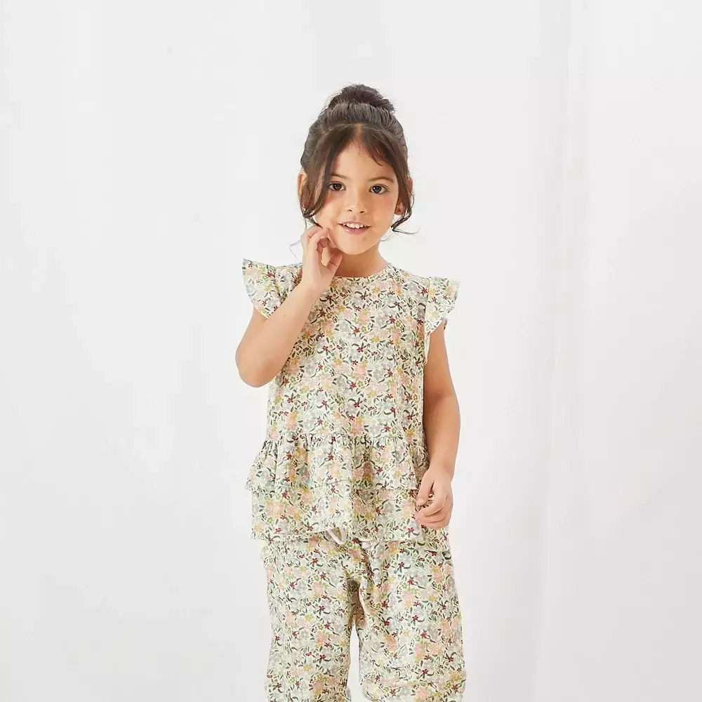 Descrição: Feito em algodão floral com forro em viscose, mangas com leve babado. Fechamento gota com botão madrepérola.