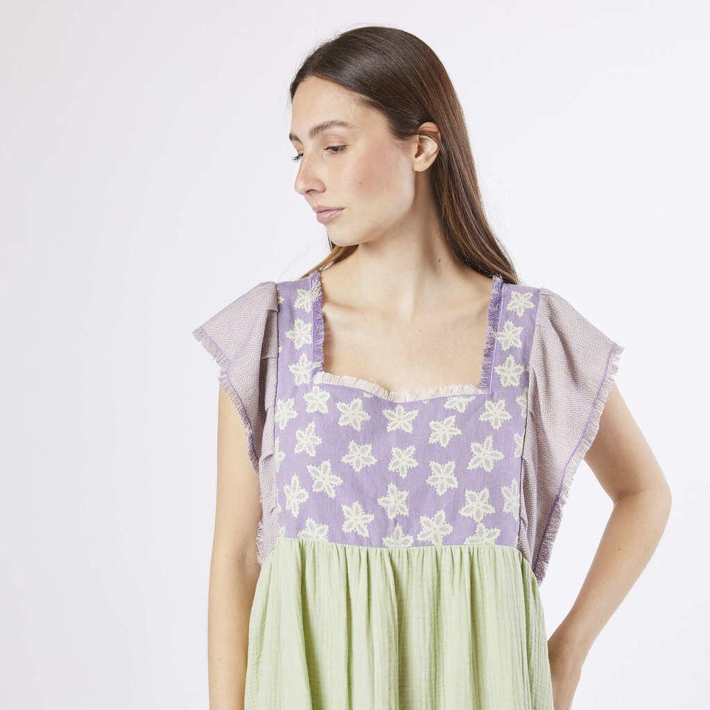 Descrição: Saida de praia feito em linho com mangas desfiadas.