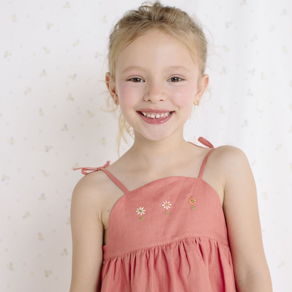 Coleção Floral Printing SS24. Vestido de linho para bebês de 3 à 18 meses. E para crianças de 2 à 12 anos.